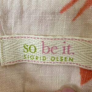 Vibrant linen floral ankle pants by Sigrid Olsen. Features pink, orange, and tan hues. Perfect for a bold statement.