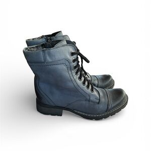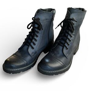 V Italia Blue Edgy Moto Combat Leather Boots Lace-Up Zip SZ 39 (US 8.5-9)