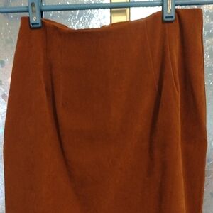 This brown skirt is perfect for any occasion. Soft and comfortable! Waist to hem 18 1/2 inches. Zipper works perfectly!