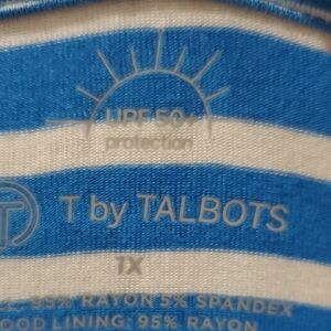 Chic striped top by Talbots. Features bold blue and white pattern. Ideal for sunny days.
