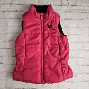 Rockawear Quilted Vest Toddler Girls 4T Hot Pink Zip Up Logo Pockets Puffer VTG