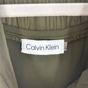 Calvin Klein Dark Green Ruffle Neck Blouse