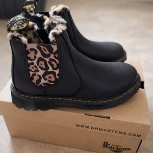 Dr. Martens Leonore Chelsea Boots Black Fur Lined Leopard Elastic Women EU 37