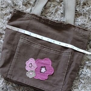Stylish brown tote bag with floral accents. Perfect for everyday use.