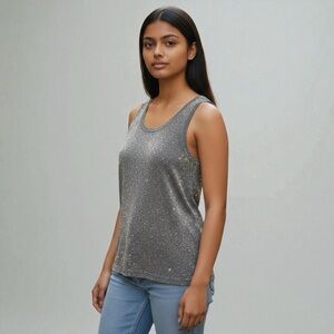 • Features: Tank Style, Shimmering Metallic, Grey Color, Classic Fit, Scoop Neck, Sleeveless