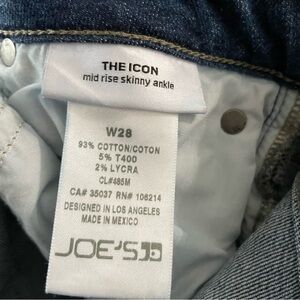 Joe's The Icon Mid Rise Skinny Ankle Raw Hem Skinny Jeans Size 28