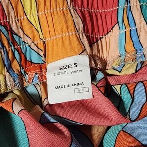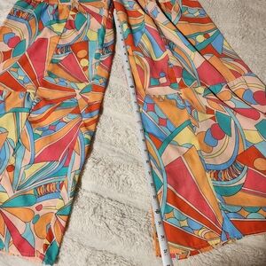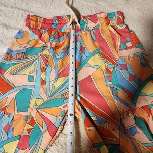 Women’s Sz S Palooza Pants Wide Leg Multicolor Elastic Waist Drawstring vibrant abstract print