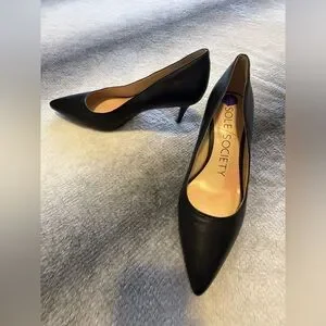 Elevate your wardrobe with these timeless and sophisticated Sole Society pumps. Crafted from high-quality black leather, these heels feature a sharp pointed toe and a sleek stiletto heel, making them the perfect staple for everything from the boardroom to a night out.