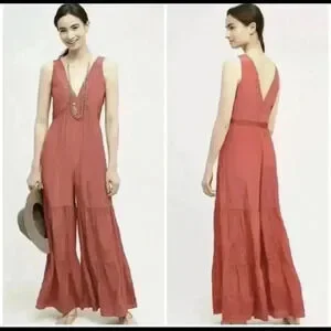 NEW Anthropologie Embroidered Silk Jumpsuit Romper PINK Sz M By Elevenses