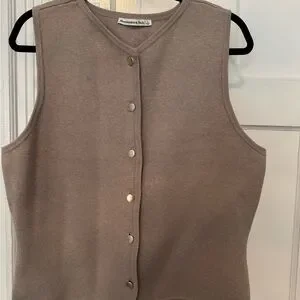 Stylish brown sleeveless top with button-up front. Perfect for layering.