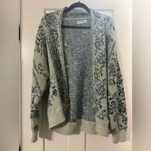 Anthropologie Blue and Green Patterned cardigan