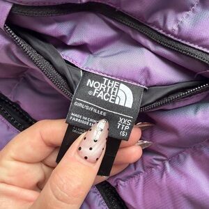 GIRLS ICY PURPLE BLACK REVERSIBLE NORTH FACE PUFFER JACKET XXS SIZE 5