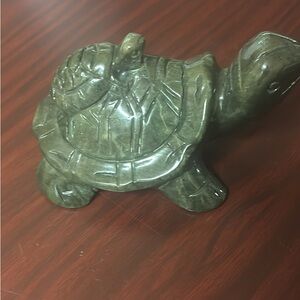 Charming green stone turtle sculpture. Ideal for decor or gifting.