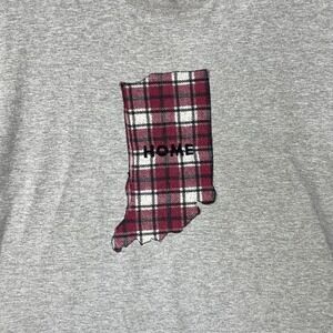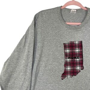Jerzees Indiana Home Plaid Patch Long Sleeve T-Shirt Mens XL Gray Heavyweight