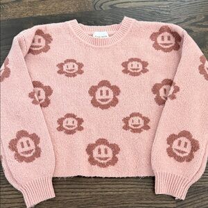Charming pink sweater with floral pattern. Perfect for casual wear. Soft and cozy material.