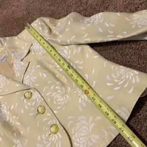 Beautiful design in this dry clean only suit. Fully lined. Shoulder pads in jacket. 3 beautiful floral buttons. See picture for details and measurements.