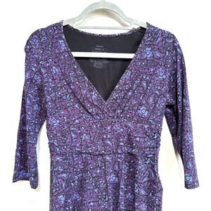 Patagonia Margot Dress Long Sleeve Purple Print Stretch Travel Size M