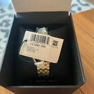 New in box! Elegant Citizen watch featuring a gold-tone band and a sleek black dial. Perfect for any occasion.