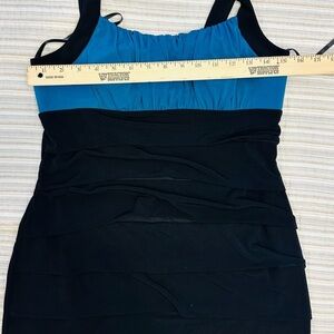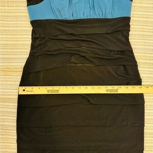 Enfocus Studio Black and Blue Strapless Ruched Cocktail Dress, size 10