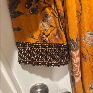 Soft Surroundings Etana Mustard Yellow Floral Embroidered Tunic Top Size 1x
