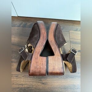 Vintage J. Crew Women’s Wooden Platform Suede Clogs Chocolate Brown Size 8