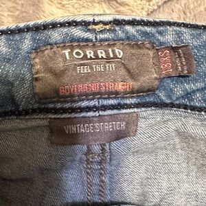 A64. Torrid Blue Distressed boyfriend Straight Leg Jeans size 18 xs