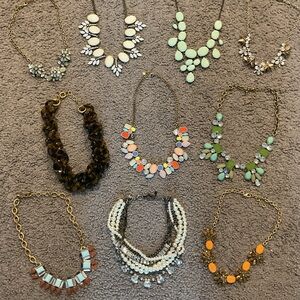 J. Crew Vintage Crystal Turquoise Beaded Statement Necklace Necklaces Jewelry Collection Gold Silver Lot of 8, all in like new condition, ALL INCLUDED except the PEARL BEADED multistrand, shown in the first picture on the bottom middle. And the Silver Gold beaded at the top right.. All are pricey originally. Beautiful array of multicolor crystals, beads and gold link bling! One gorgeous tortoise large Link necklace as well. All 9 have the J. Crew logo pendant shown, Perfect for casual, party, wedding, prom, business, office, workwear. Great for wholesale or resellers, amazing Rare collectible necklace lot! Will ship right away. Check out my other designer items.