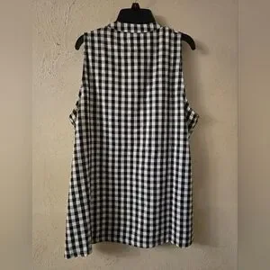 Elegant sleeveless blouse with a ruffle detail. Features a classic checkered pattern. Ideal for both work and casual wear.