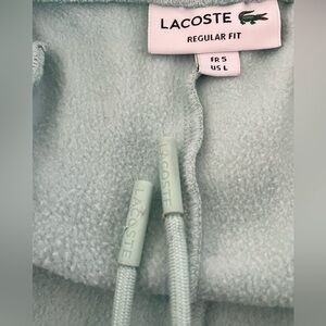 Made with organic cotton fleece, they have a soft plush interior while still being breathable and structured. Features the signature Lacoste crocodile logo near the hem for that classic designer look.