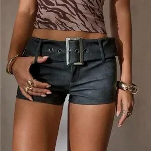 Floerns Stylish Y2K Faux Leather Mini Shorts with Belt