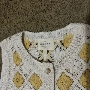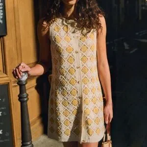 🌻🐝Sézane MARIE DRESS Crochet Floral Dress in Ecru/Yellow