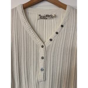 Elevate your wardrobe with this classic vintage 2000s ribbed henley top from Aventura. Nice versatile piece. Wear alone or under a blazer.