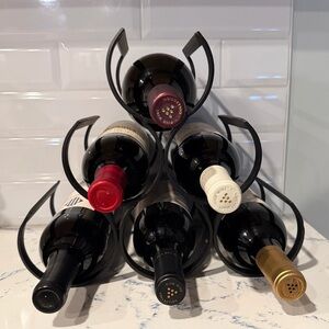 Display your wine collection with this elegant yet simple black metal wine rack. Perfect for any home dining area, it adds a touch of sophistication to your decor.