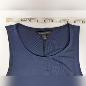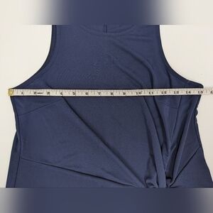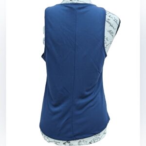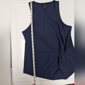 Sleeveless layering staple updated with a chic twist. Roundneck, sleeveless, pullover style, asymmetrical knotted design Product details: Color: Deep blue Size: XS Fabric: 100% polyester Condition: EUC (there is a little pen mark - see last photo, priced accordingly) Approx measurements laying flat: Shoulder to shoulder: 10" Pit to pit: 15" Length: 24" Hem: 18.5" Smoke free home Please, feel free to ask any questions New to Poshmark? Get started by signing up using my code STEFFYSNICK and you'll get a $15 off your first purchase!
