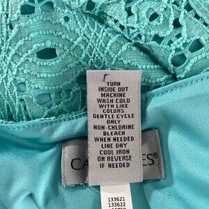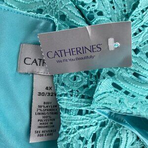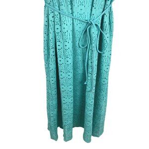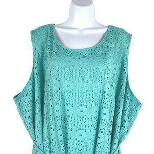 Catherines Dress Women's 4X Eyelet Turquoise Sleeveless Tie Waist NWT DR-1085