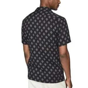 Reiss men shirt, Reiss short sleeve, slim fit button down, geometric print shirt, black patterned shirt, modern menswear, designer casual shirt, smart casual outfit, summer button up, resort shirt, date night look, minimalist style, European brand