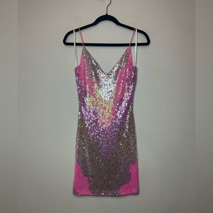 B. Darlin Sequin V-Neck Bodycon Silver and Pink Dress ✨💖