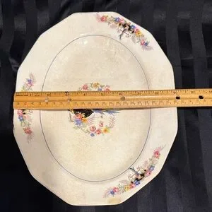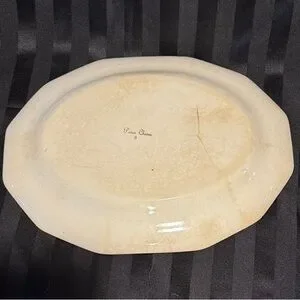 The off white plate itself shows much wear. There is crazing across the entire surface of the front and back of the platter. No crazing can be felt, it’s under the surface. There are areas of discoloration of across all surfaces that does not clean off. All of the imperfections are visible in the pictures.