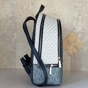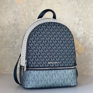 Michael Kors Rhea Medium Backpack MK Glitter Blue/White