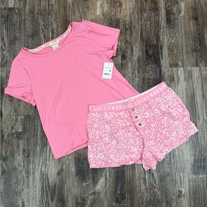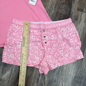 Lucky Brand Women’s Size Small Pink and White Floral Pajama Shorts and T Set