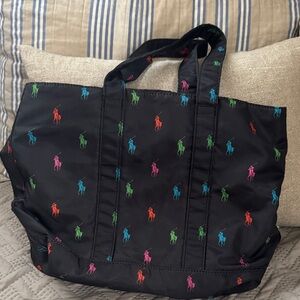 Ralph Lauren Black Tote with Colorful Polo Icons