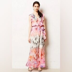 Anthropologie HD in Paris Easel Flora Ruffle Maxi Dress Size 6 Floral Watercolor