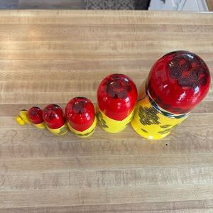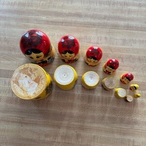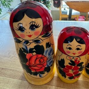 Russian Nesting Dolls - Set of 7 Dolls - Hand painted from Russia - Tallest doll is 7" with a glossy finish. Very cute set! They are a little difficult to get apart but if I can do it, you can too! They are in very good pre-owned condition.