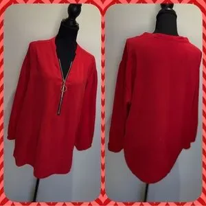 Stylish red women's top featuring a chic zipper detail. Perfect for any occasion. No stains or tears. Pet and smoke free home.