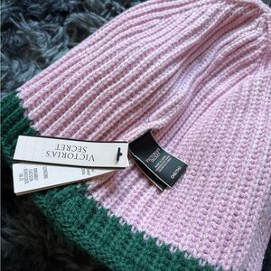 Victoria’s Secret Pink & Green Colorblock Knit Beanie NWT Cozy Winter Hat OS