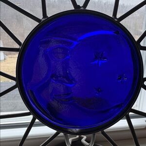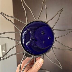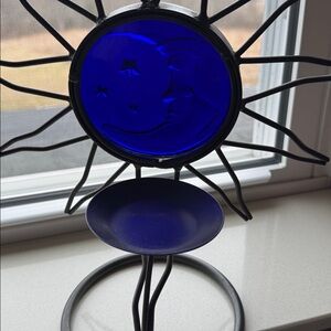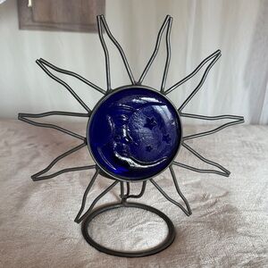 Cobalt Blue Sun and Moon Metal Art Candle Holder