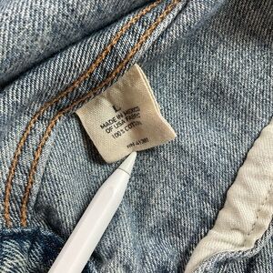 This Polo Ralph Lauren denim trucker jacket features a light indigo wash with subtle grinding and uneven hand-sanding for a vintage-inspired look. Front flap and side pockets. Lightweight soft 100% cotton. Size large. See photos for measurements. EUC.