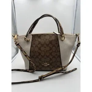 Coach Signature Canvas Leather Satchel Crossbody Tote Bag Beige Brown