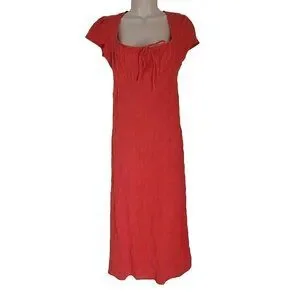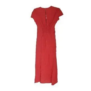 NEW FREE PEOPLE FREE-EST NATALYA SMOCKED COTTON WARM RED RUCHED MIDI DRESS SZ XS