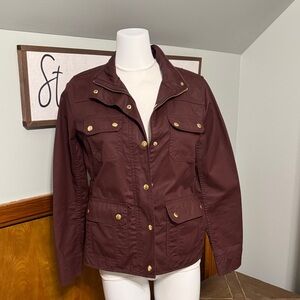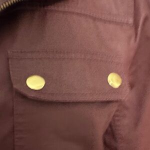 Stylish women's plum jacket featuring elegant gold accents. Perfect for a chic and versatile look.